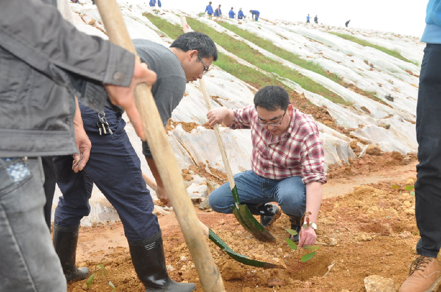 3月12日的这天,天空灰蒙,但依旧阻挡不了我们的脚步。中午1点整,广西银亿公司五个党支部、团支部共计300多人在公司银亿精神宣传栏下集合完毕后整装齐发,浩浩荡荡前往公司渣场开始了两个小时的植树活动。在活动过程中,大家兴致勃勃、情绪高涨,这正是撸起袖子,加油干!细心的将一颗颗小树苗放入树坑、填土扶正、踩实浇水,精心的栽种每一颗树苗。在植树中,不少人的脸上流下了喜悦汗水,都忙的忘记了擦拭,这样的忘我构成了一幅独特的劳动画面,十分美丽。